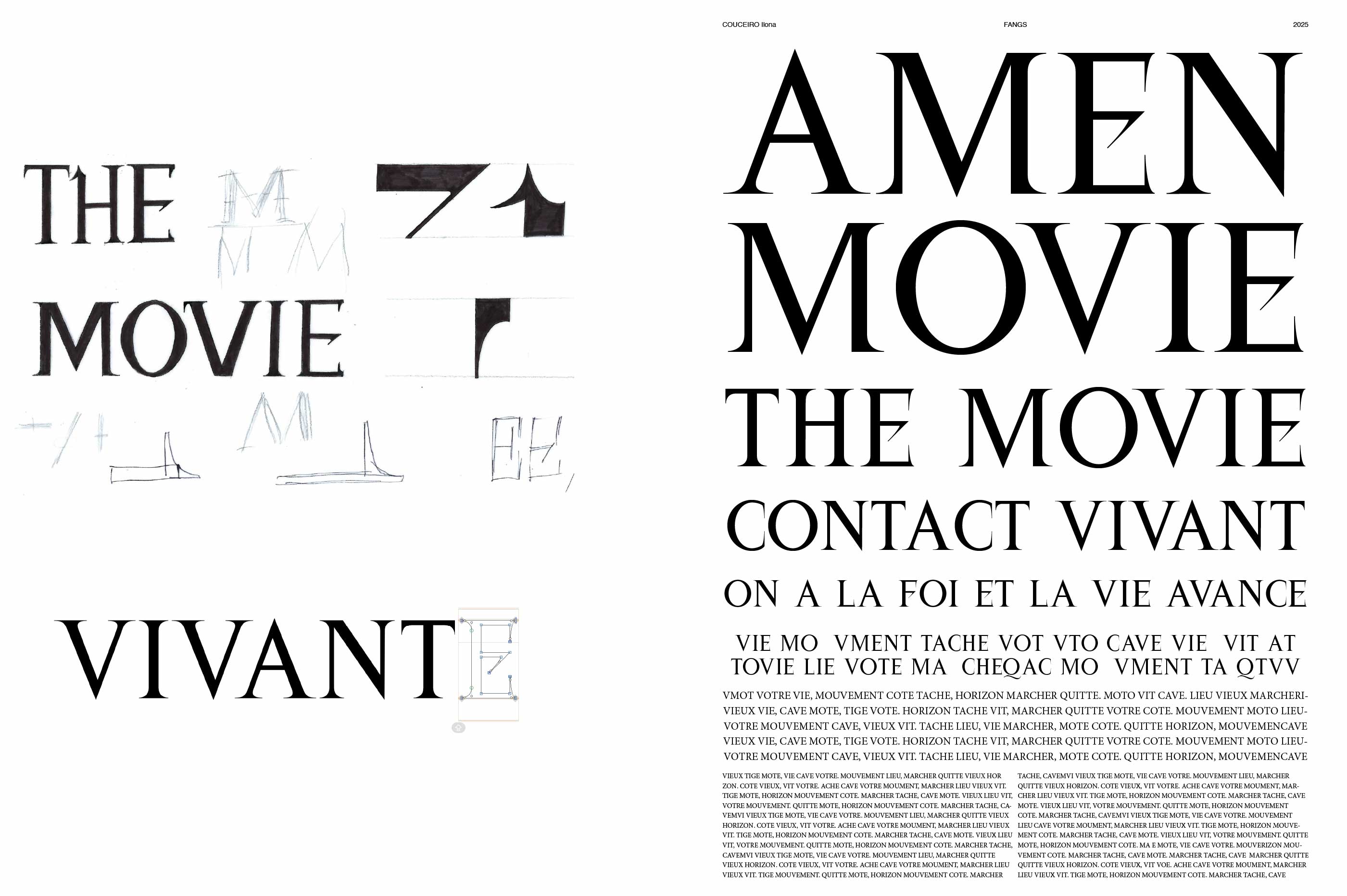 Suite à un projet mené sur Glyphs, découvrez la police Fangs : un lettrage conçu pour le titrage d’un film de genre fictif, dans une logique de pastiche. L’enjeu était d’installer une ambiance vampirique par le dessin de lettres, tout en proposant une interprétation personnelle et contemporaine. Ce travail m’a permis d’affiner la mise au point du lettrage, jusqu’à son intégration au sein d’une affiche.