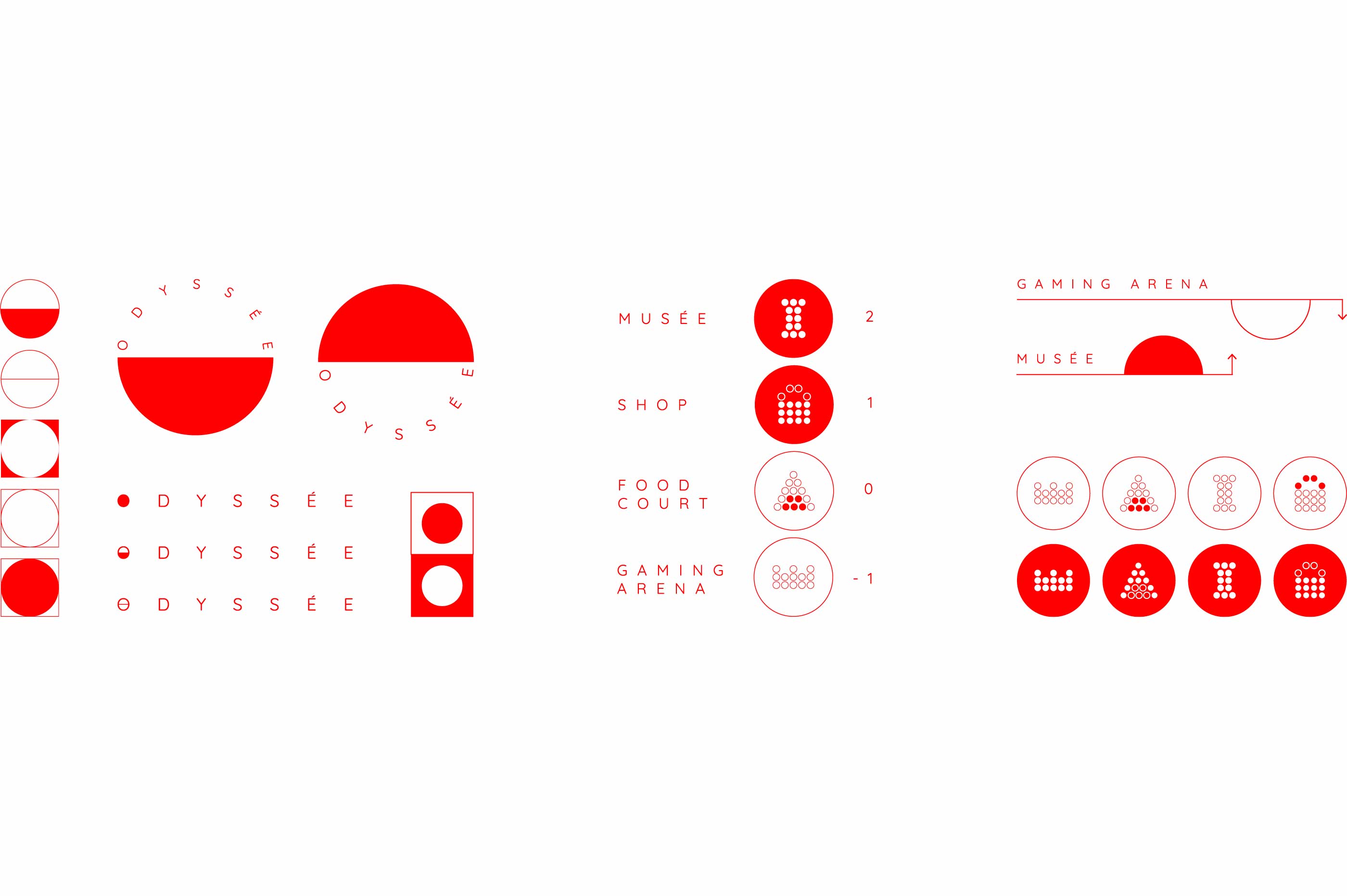 Projet de branding en cours pour Odyssée, musée et espace culturel dédié au jeu vidéo. L’enjeu est de construire une identité institutionnelle capable de rompre avec les clichés “gaming”. Ma démarche explore l’immersion à travers un jeu de réalités et de perceptions, traduit par un langage scientifique. Une référence discrète au Japon, central dans l’univers du lieu, vient enrichir cette intention.