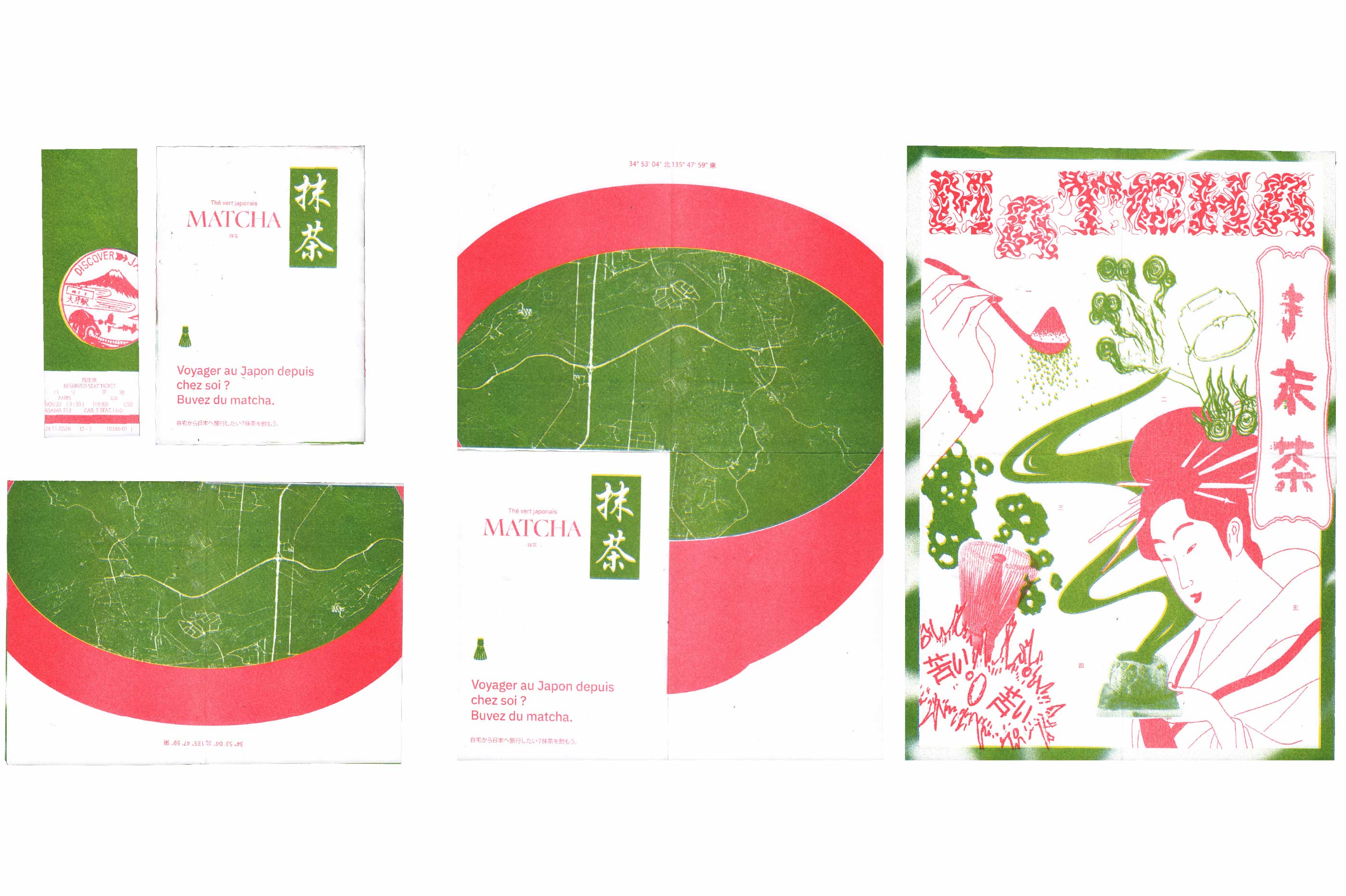 Dans le cadre d’un projet éditorial imprimé en risographie, j’ai imaginé un voyage immobile inspiré de la cérémonie japonaise du matcha. L’enjeu était de traduire un rituel en objet de lecture, en jouant sur le rythme, la manipulation et la notion d’exploration. Les contraintes d’impression ont orienté les textures et la palette, afin de créer un objet sensible et unique à manipuler.